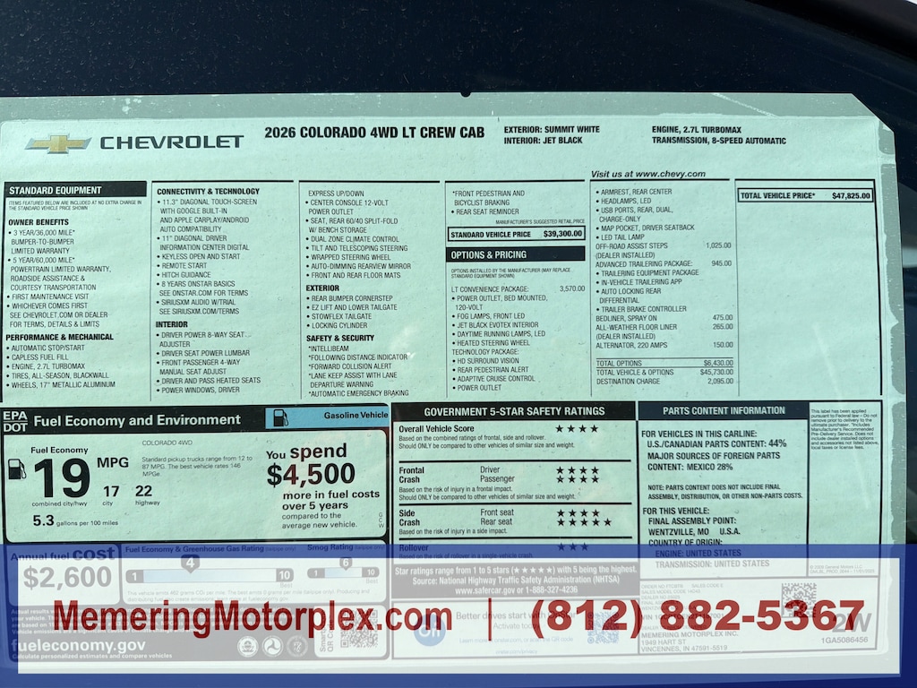 LT CONVENIENCE PACKAGE includes (CWM) Technology Package, (DA5) Rear center arm rest, (E90) Driver seat back pocket, (KI3) Heated steering wheel, (K7A) Wireless Charging, (KI6) 120-volt rear console power outlet, (KC9) 120-volt bed-mounted power outlet, (UBI) dual rear USB ports, (T4L) LED headlamps, (T40) LED fog lamps, (T7E) LED Daytime Running Lamps, (T93) LED tail lamps and (HXR) Evotex seats, ADVANCED TRAILERING PACKAGE (Includes (Z82) Trailering Package, (G80) Differential, automatic locking rear, (U1D) Trailering App.) , REAR AXLE, 3.42 RATIO, POWER OUTLET, 120-VOLT, LOCATED IN THE REAR OF CENTER CONSOLE, POWER OUTLET, 120-VOLT, BED MOUNTED, MAP POCKET, DRIVER SEATBACK, LT PREFERRED EQUIPMENT GROUP includes standard equipment, LPO, ALL-WEATHER FLOOR LINER, 1ST AND 2ND ROWS includes Chevrolet logo, (dealer-installed), JET BLACK, EVOTEX SEAT TRIM, HEADLAMPS, LED, HD SURROUND VISION, FOG LAMPS, FRONT LED, ENGINE, TURBOMAX (310 hp [231 kW] @ 5600 rpm, 430 lb-ft of torque [583 Nm] @ 3000 rpm) (STD), DIFFERENTIAL, AUTOMATIC LOCKING REAR, DAYTIME RUNNING LAMPS, LED, BLIND ZONE STEERING ASSIST WITH TRAILERING, BEDLINER, SPRAY-ON, BLACK WITH CHEVROLET LOGO, ARMREST, REAR CENTER, ALTERNATOR, 220 AMP, ADAPTIVE CRUISE CONTROL.