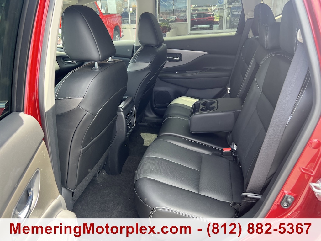 Trunk/Hatch Auto-Latch, Trip Computer, Transmission: Xtronic Continuously Variable (CVT), Transmission w/Sequential Shift Control and Oil Cooler, Tires: 235/55R20 AS, Tire Pressure Monitoring System Tire Specific Low Tire Pressure Warning, Tailgate/Rear Door Lock Included w/Power Door Locks, Strut Front Suspension w/Coil Springs, Steel Spare Wheel, Speed Sensitive Variable Intermittent Wipers, Side Impact Beams, Seats w/Leatherette Back Material, Right Side Camera, Remote Releases -Inc: Proximity Cargo Access and Mechanical Fuel, Remote Keyless Entry w/Integrated Key Transmitter, 2 Door Curb/Courtesy, Illuminated Entry, Illuminated Ignition Switch and Panic Button, Rear Cupholder, Rear Cross Traffic Alert (RCTA) w/Rear Automatic Braking (RAB), Radio: AM/FM/CD/MP3/WMA Audio System -inc: Bose premium audio system w/11 speakers plus dual driver subwoofer, NissanConnect w/navigation featuring Apple CarPlay and Android Auto, Nissan door to door navigation w/3D building graphics and satellite imagery, connected navigation features including online POI search, door-to-door and online premium traffic information, SiriusXM Travel Link (weather, fuel prices, movie listings, stock info, sports and parking), SiriusXM Traffic, auxiliary audio input jack, SiriusXM satellite radio, A-IVI 8 display, 2 front illuminated USB connection ports (1 type-A, 1 type-C) for iPod interface and other compatible devices, Bluetooth hands-free phone system, streaming audio via Bluetooth, hands-free text-messaging assistant, Siri Eyes Free and 2 rear illuminated USB charge ports (1 type-A, 1 type-C), Radio w/Seek-Scan, Clock, Speed Compensated Volume Control, Steering Wheel Controls and Radio Data System, Quasi-Dual Stainless Steel Exhaust w/Chrome Tailpipe Finisher.